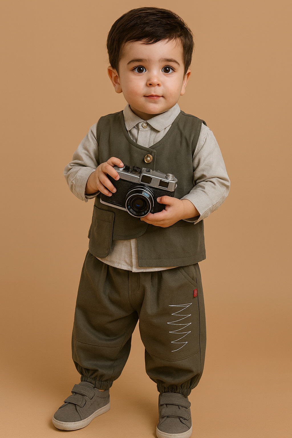 Dress your little gentleman in timeless style with thisΒ 3-piece vintage-inspired outfit, crafted for comfort and charm. The set includes a soft cream shirt, smart brown vest, and matching pants β perfect for special occasions, parties, or everyday elegance.
