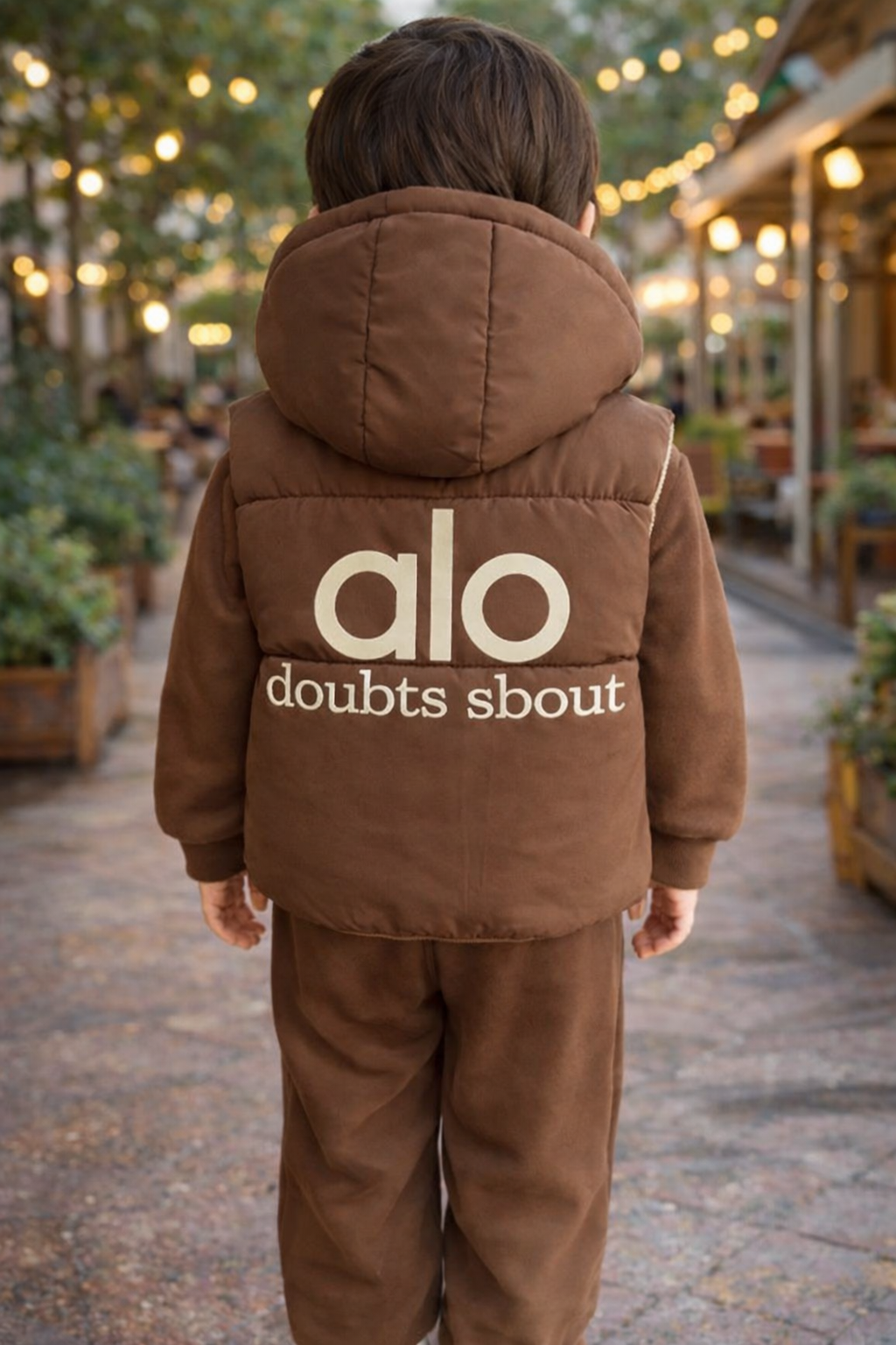 Baby Boys Winter Hoodie Set – Premium Brown Puffer Vest with Sweatshirt & Joggers