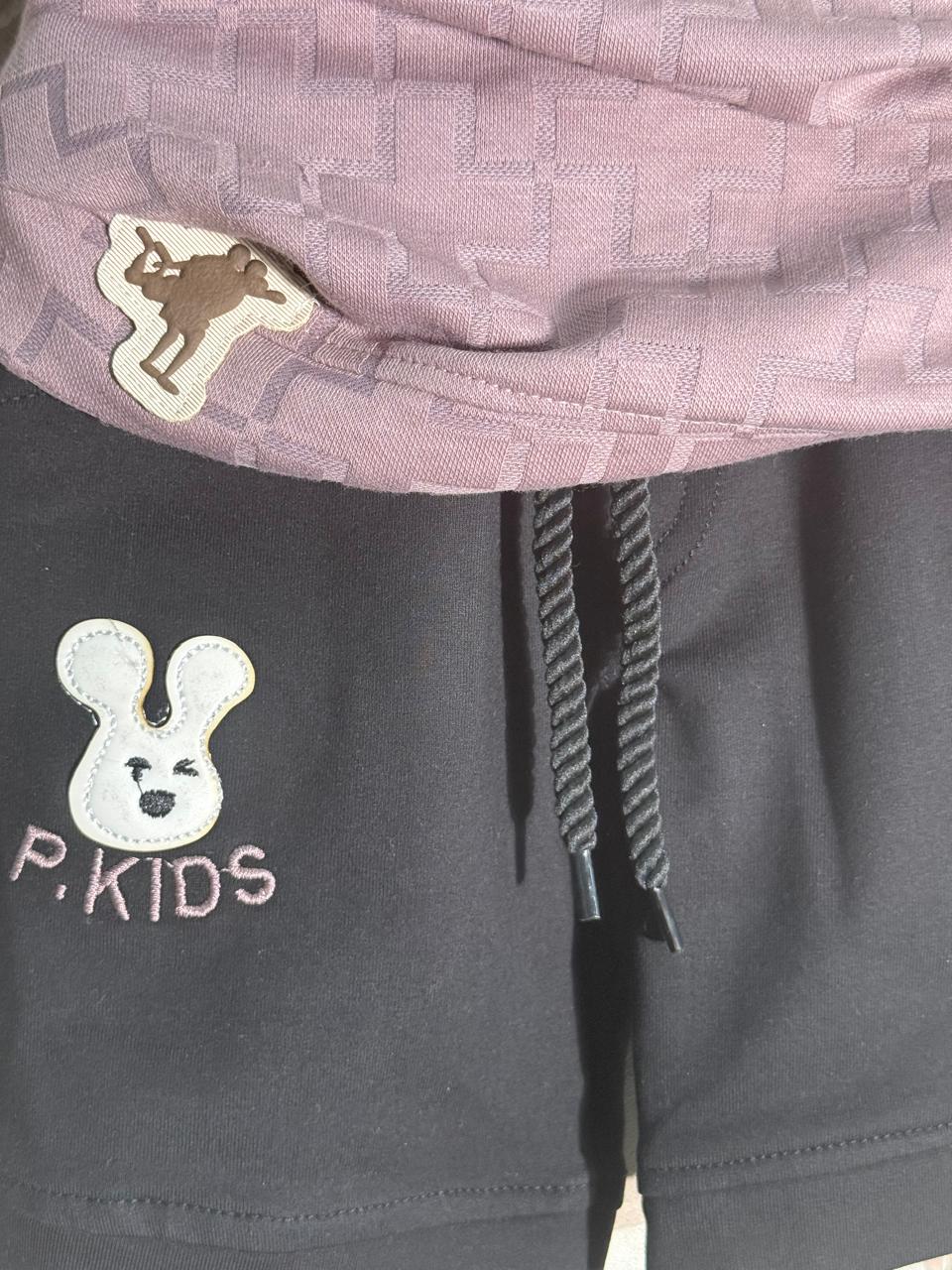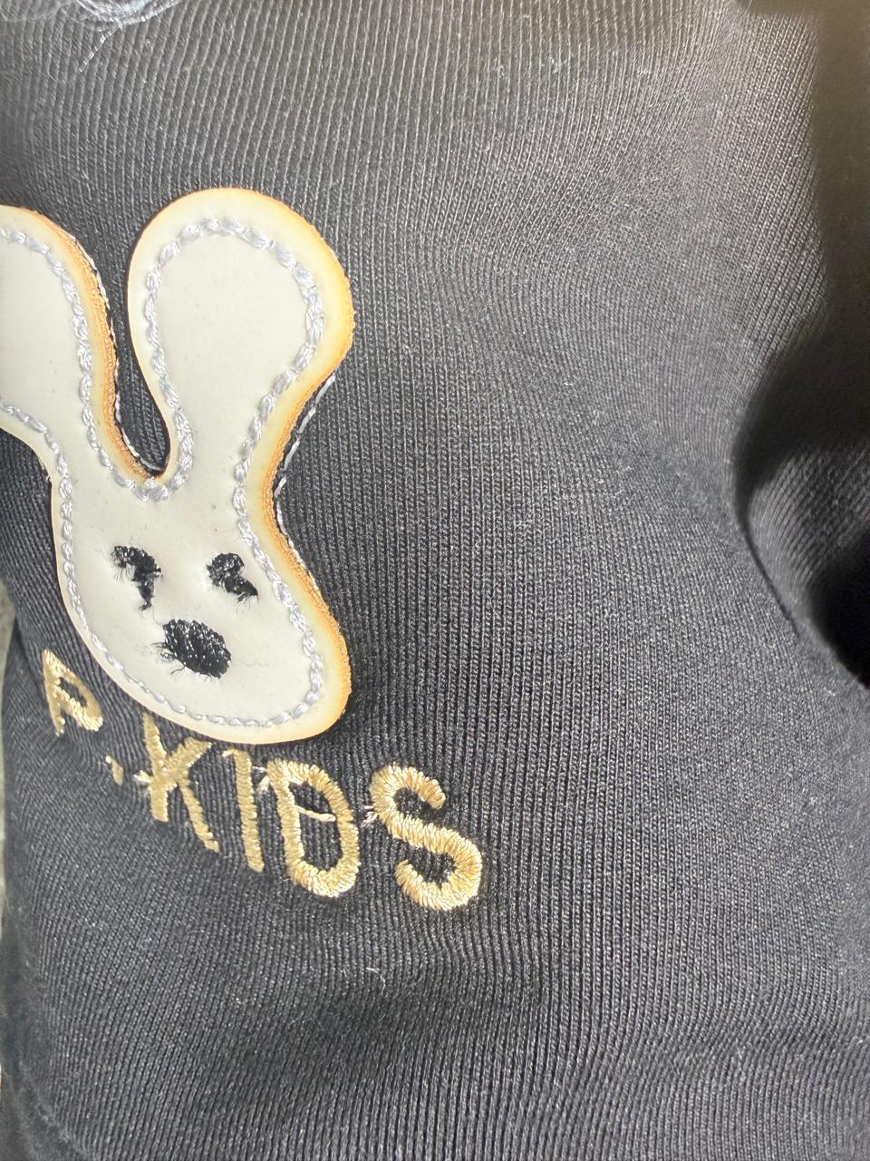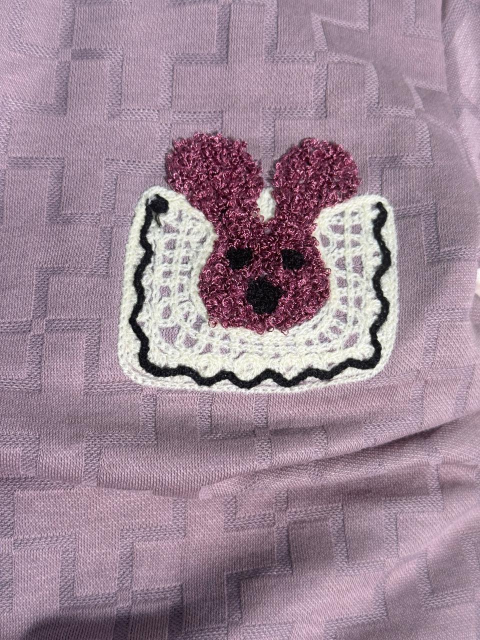 This stylish boys’ outfit features a soft textured half-sleeve T-shirt with an adorable embroidered bunny design.