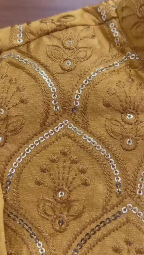 Make your little prince stand out in this stunning Mustard Gold Traditional Outfit, specially designed for weddings and festive occasions. This elegant set includes a soft kurta paired with a beautifully embroidered Nehru jacket and matching dhoti-style pants, giving a perfect royal look.