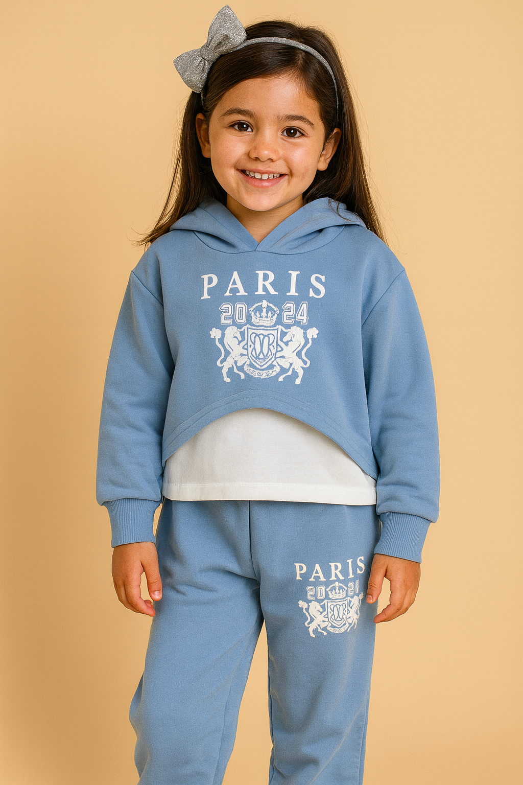 Paris 2024 Blue Kids Tracksuit Set – Hoodie & Joggers