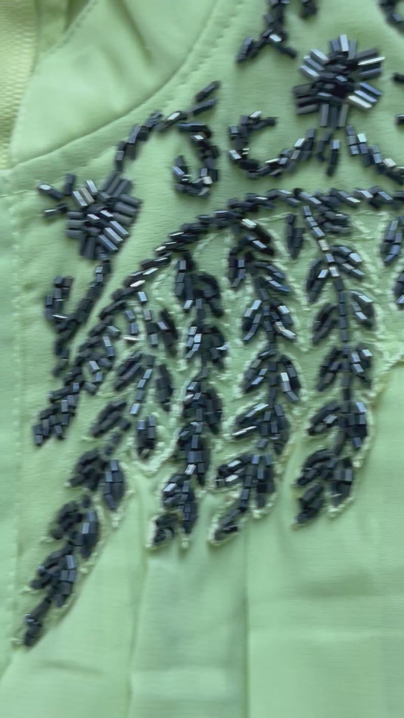 Stylish asymmetrical kurti and pant with hand-embroidered black thread and beadwork on the yoke