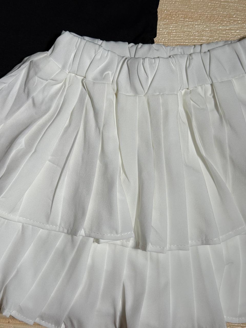 👗 Skirt: A beautiful white pleated layered skirt that adds a touch of elegance and playfulness to any look.